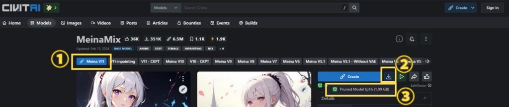 MeinaMixは2次元イラスト用のSD1.5向けモデルの中ではCIVITAIのダウンロード数がナンバーワンの超人気モデルです。
