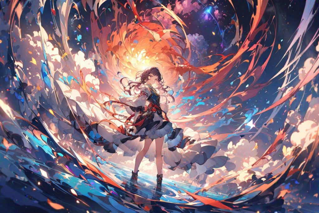 a woman, beautiful anime, full body, standingworst quality, lower quality, extra hand, extra head, extra leg, extra arm, monochrome, extra finger, extra body, extra eyes, glitsシード値は同じもので固定してます。