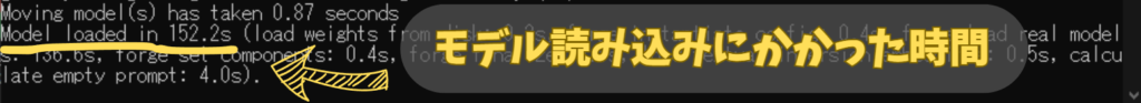 モデル読み込みにかかった時間もコマンドプロンプトのログに表示されるのでそこから確認しています。