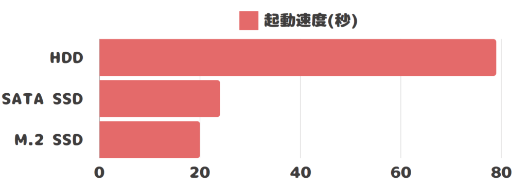 同じSSDでもSATA SSDと比べるとM.2 SSDの方が少し早くなりました。