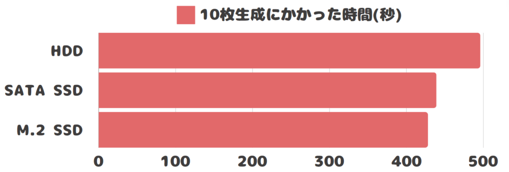 というわけで、画像保存先をHDDにするだけであれば生成速度にほとんど影響ないということが確認出来ました。